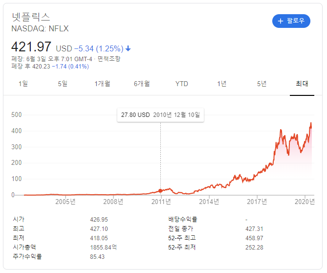 - 2010년 12월에 S&P에 추가됨: 당시 주가 $27