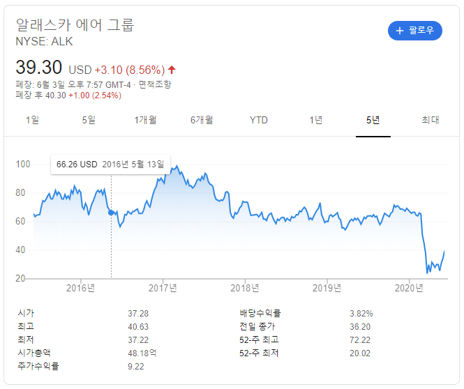 - 2016년 5월에 S&P에 추가됨: 당시 주가 $66