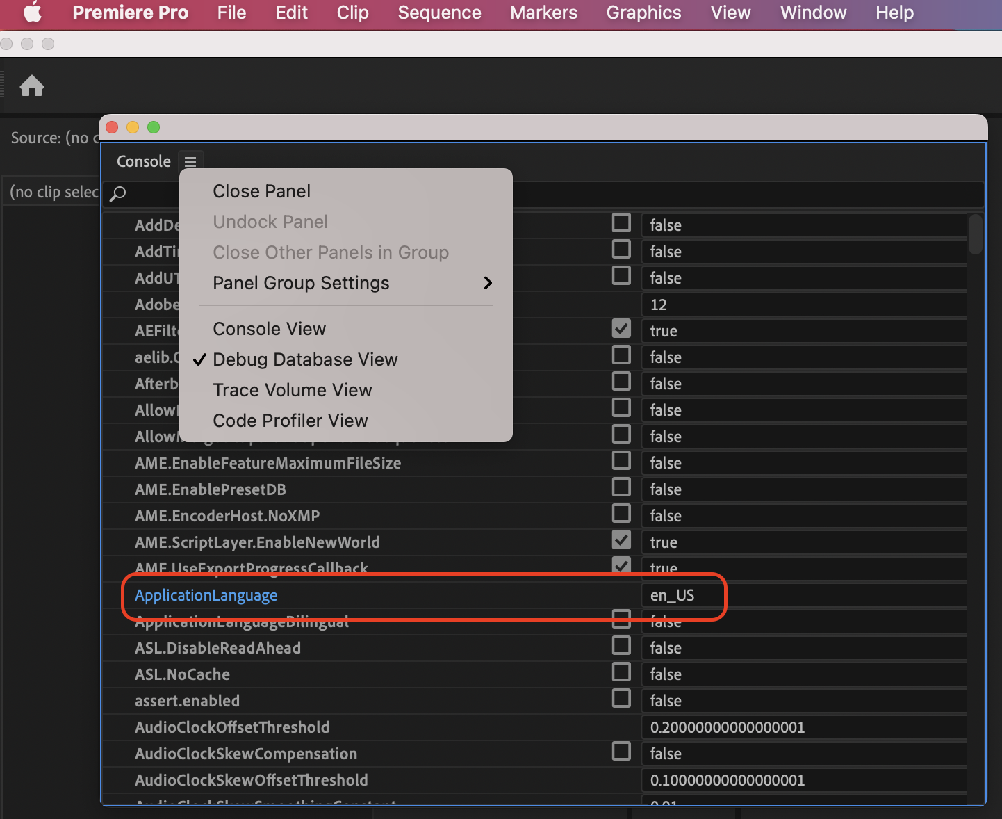 2) 좌측 메뉴에서 "Debug Database View"를 선택하고 검색창에 'lang'이라고만 입력하면, ApplicationLanuage 가 검색된다.